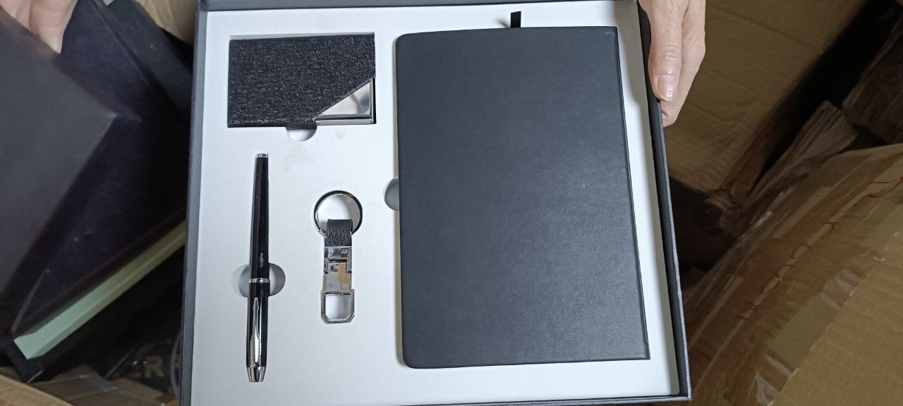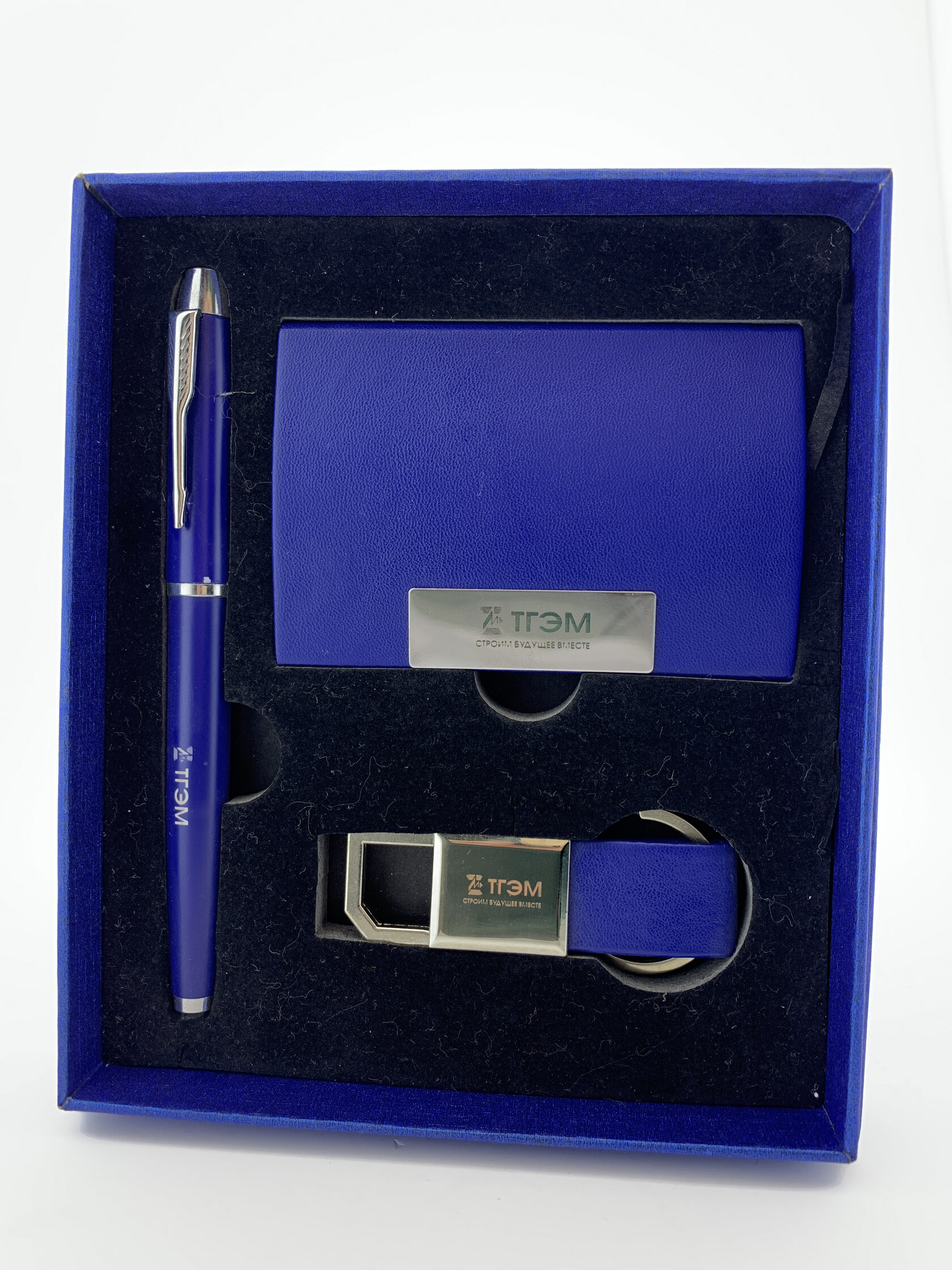 Полноценный премиальный набор для деловых людей. В комплект входят ежедневник, стильная металлическая ручка, флешка и удобная визитница — всё, что нужно для работы, встреч и организации. Набор смотрится солидно и станет отличным подарком для сотрудников, партнёров и клиентов.